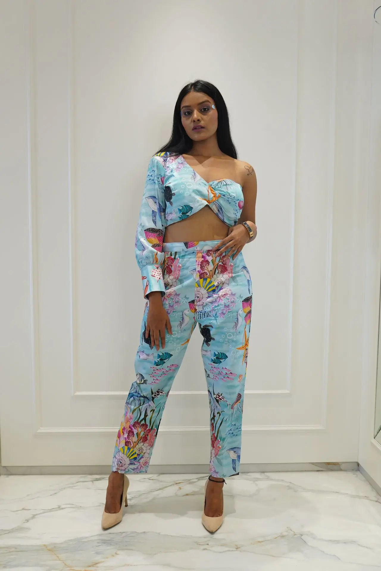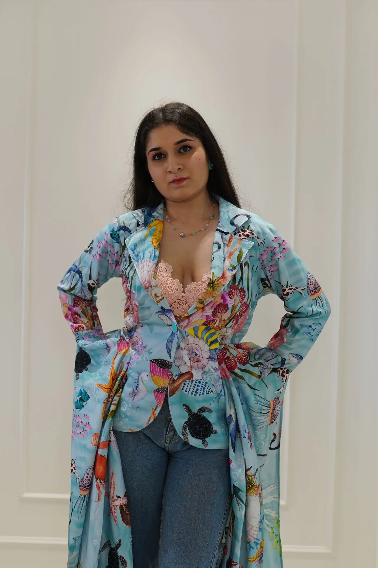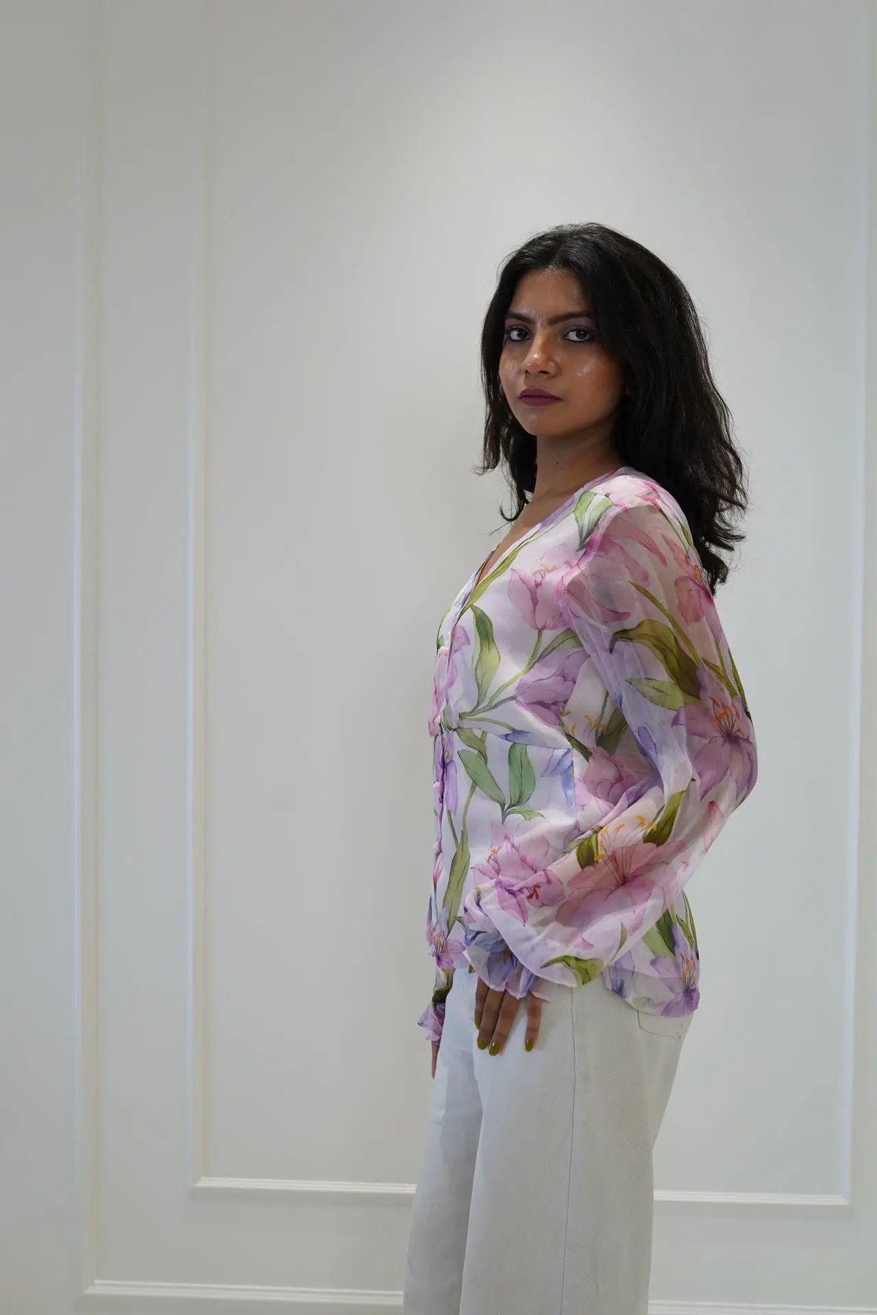 Developing our unique print series featuring a gentle blush pink hue complemented by intricate style of Roses flower designs