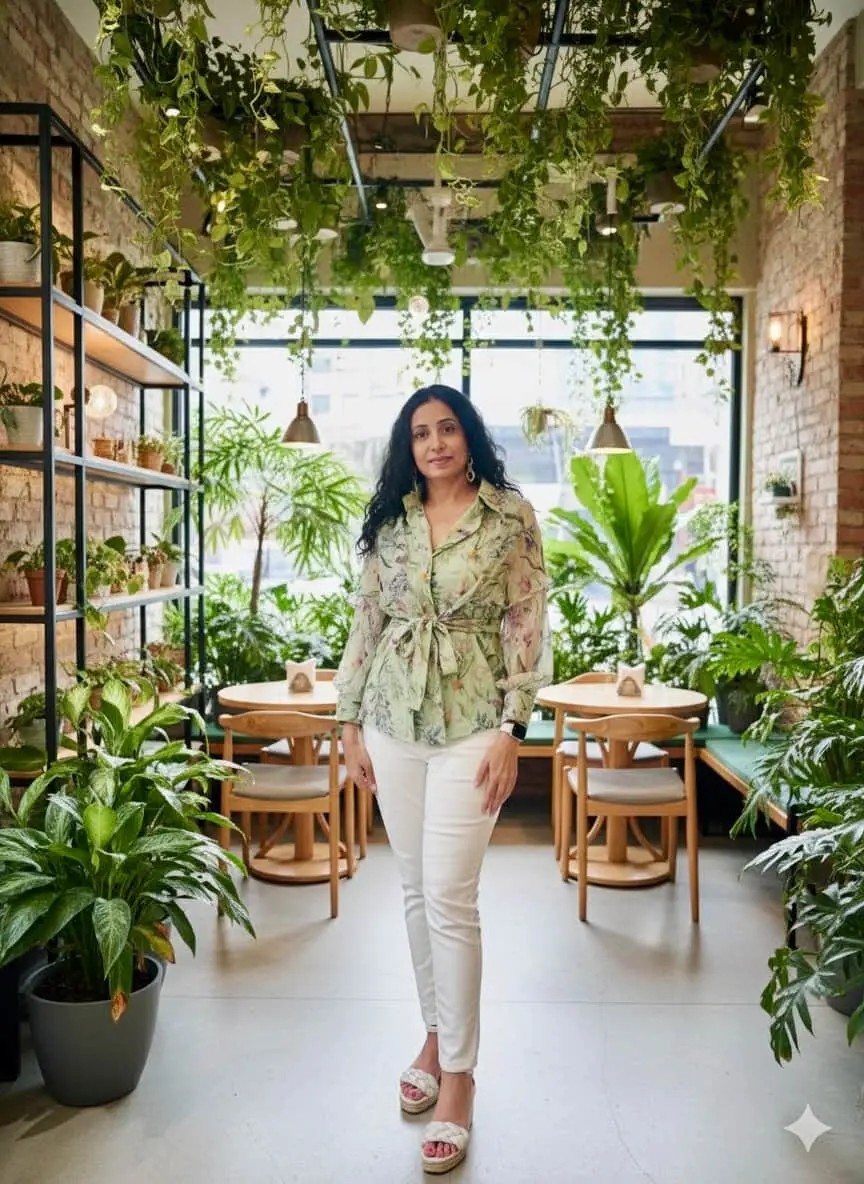 " Absolutely loved the trendy shirt complemented by a mint green floral scarf."